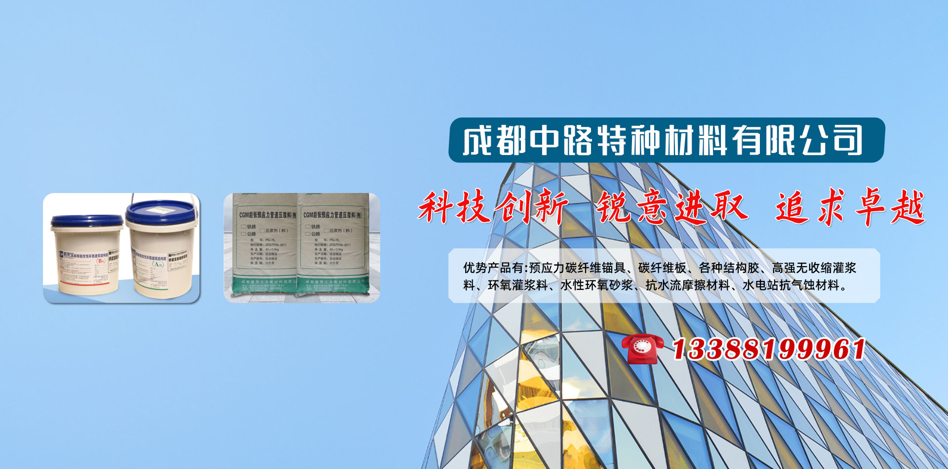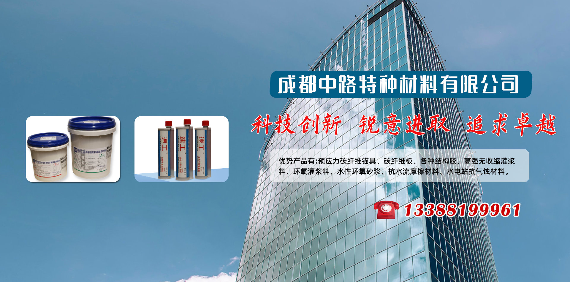 成都中路特種材料有限公司借助清華大學高分子材料學科、晨光化工研究院、西南交通大學、四川交通職業(yè)技術學院科研技術平臺成為一家集新材料研發(fā)、銷售、技術服務和施工于一體的專業(yè)服務公司,優(yōu)勢產(chǎn)品有:預應力碳纖維錨具、碳纖維板、各種結(jié)構(gòu)膠、高強無收縮灌漿料、環(huán)氧灌漿料、水性環(huán)氧砂漿、抗水流摩擦材料、水電站抗氣蝕材料和研發(fā)各種特殊用途膠黏劑產(chǎn)品地處西南腹地成都,業(yè)務覆蓋四川各大中小城市、重慶、云南、昆明、新疆、西藏等區(qū)域。產(chǎn)品涵蓋各種加固施工材料、施工設備及施工配件,品牌有威士邦等aa進口品牌,同時批發(fā)銷售國產(chǎn)高、中、低端品牌,為客戶提供全面參考。